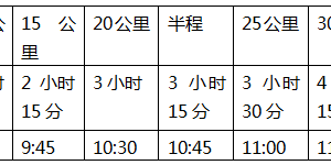 1) 马拉松关门时间具体见下表: