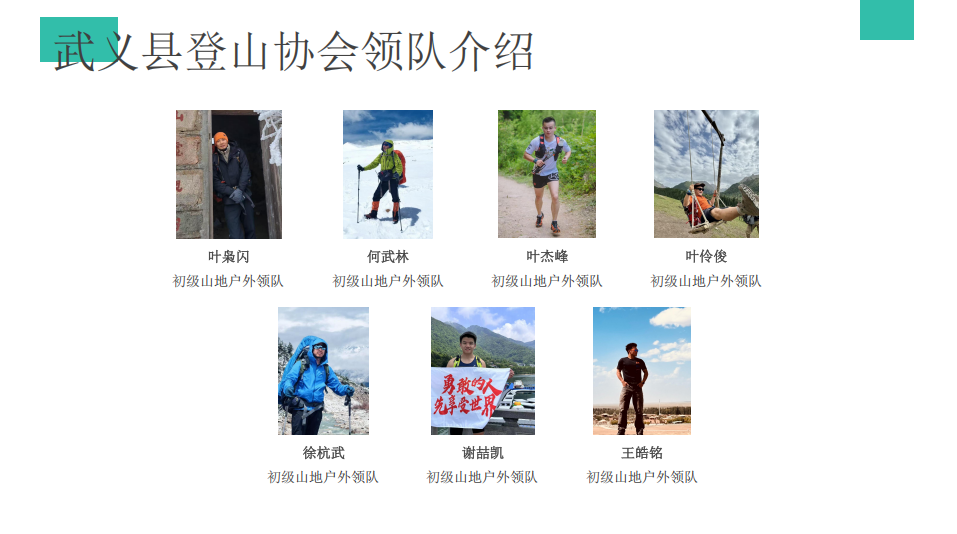 • 武义县登山协会的成立离不开武义县文化和广电旅游体育局和武义县民政局的大力支持,也离不开成立前期筹备工作中给予大量帮助的各位,再次欢迎活动当天大家的莅临!